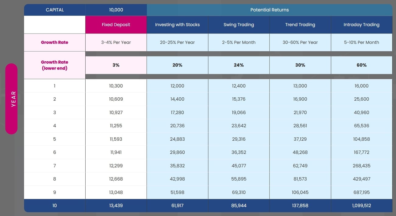 Here’s a comparison showing how RM10,000 could potentially grow over 10 years depending on your approach. When you become your own investment expert and invest in the US market, the results can be powerful and all this can be achieved through a systematic and safe approach.